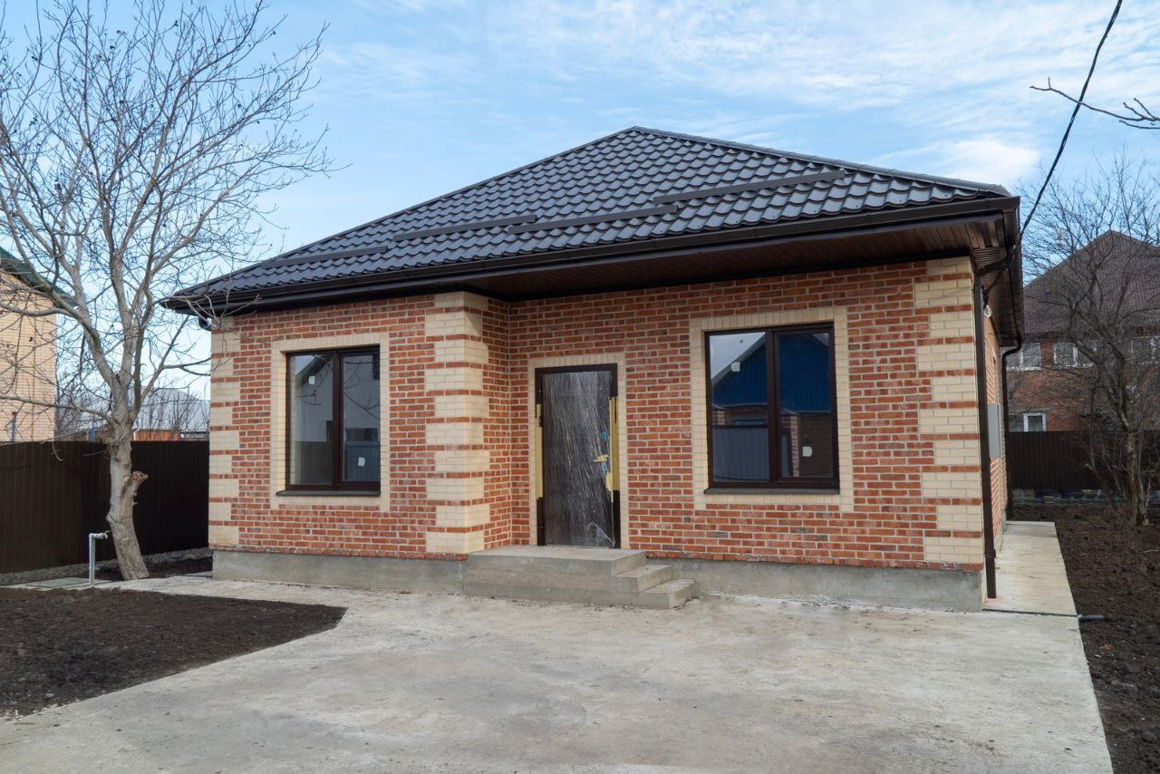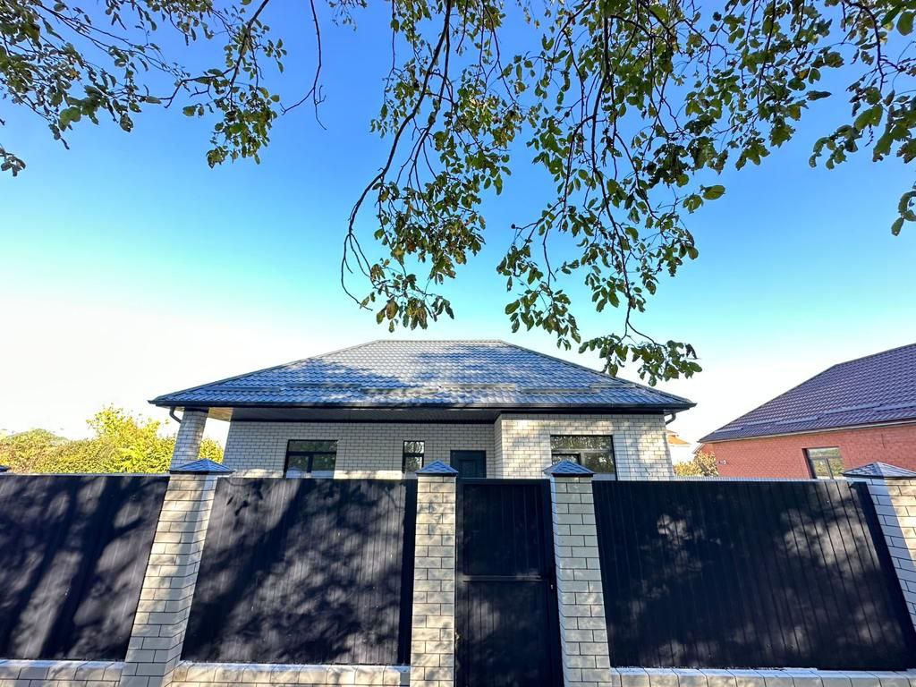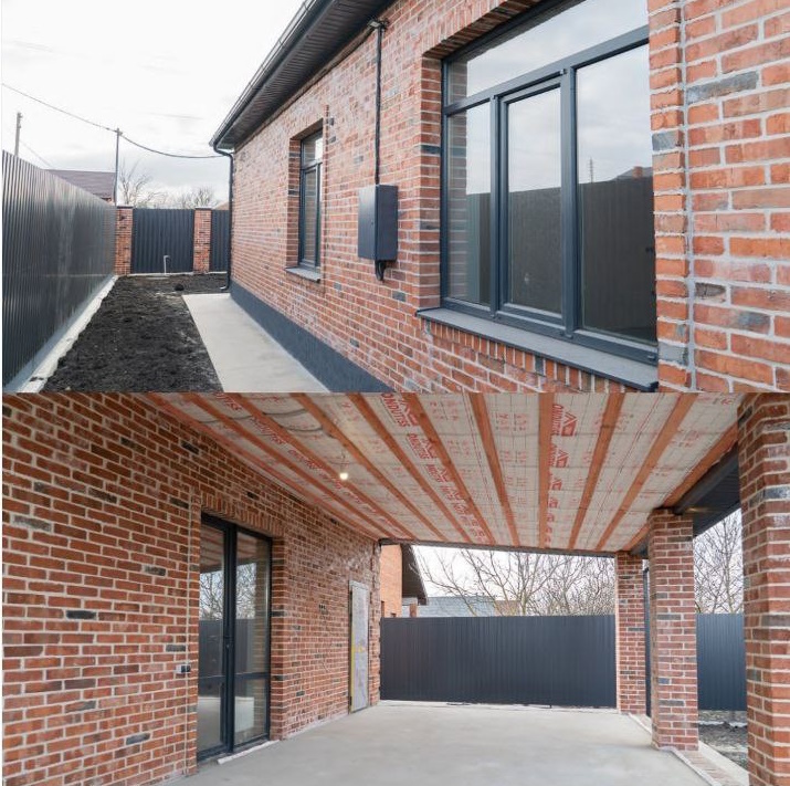 Проект дома рассчитан для комфортного проживания 3-5 человек Площадь общая ...................80 кв м Спален ..................................3 Материал стен.......................газоблок+кирпич Фундамент ............................ленточный Забор.....................................по периметру из металлопрофиля, ворота откатные Коммуникации ......................электричество, центральная водопровод Отопление.............................электро- или газовый котел